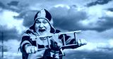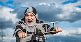 caucasian senior man on sky background. senior man at retirement. senior retired man with toy plane