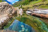 View of the Verzasca river in Lavertezzo, Verzasca Valley, Ticino Canton, Switzerland