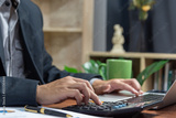 Hand businessman doing finances and calculate on desk about cost at home office.Business investment Financing Accounting Banking tax Concept.