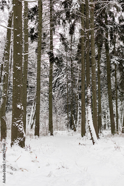 Fir trees covered with snow in winter forest