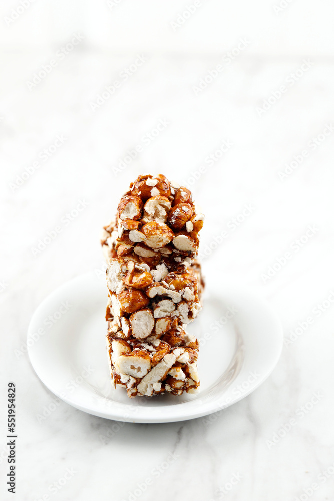 Brondong Jagung or Borondong, Javanese Traditional Snack Sweet Popcorn with Sticky Palm Sugar.