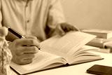 Businessperson reading and writing on book.education studying knowledge development and cognition learning concept.