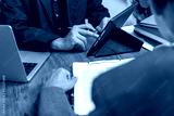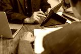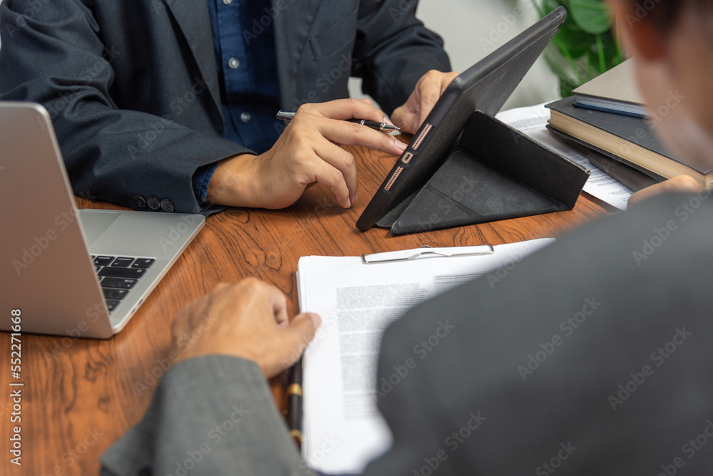 business people are meeting to analyze data for marketing plan and financial report at office.