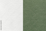Texture of craft white and green paper background, half two colors, macro. Structure of vintage dense olive cardboard.