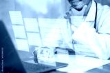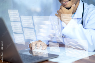 Doctor using computer Document Management System (DMS), online documentation database process automation to efficiently manage files