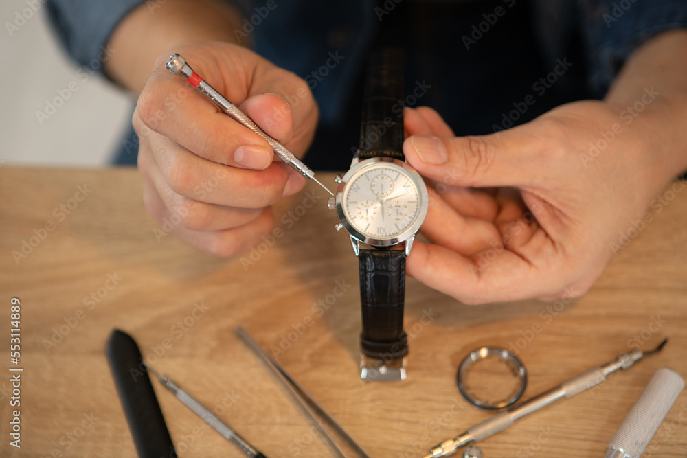 close up of craftsman repairing a watch