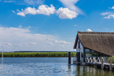 Schwimmendes Haus im Hafen von Wieck auf dem Fischland-Darß