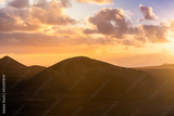 Amazing sunset over El Cuervo Volcano, in Lanzarote, Canary Islands, Spain