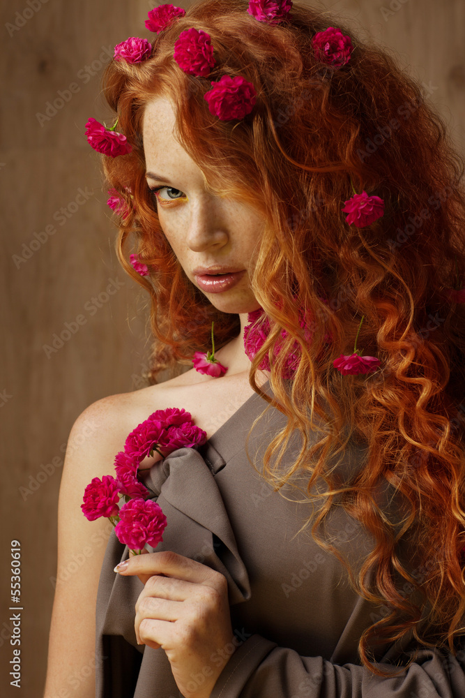 red-haired girl in flowers