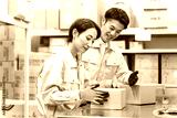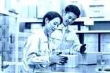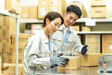 作業着を着た日本人男女