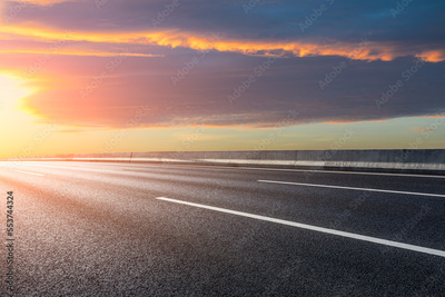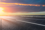 Asphalt road and sky clouds at sunrise. Road and sky background.