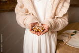 Christmas cookies in girl hands in the kitchen