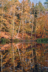 Sunny autumn day at the lake in elmshorn. High quality photo