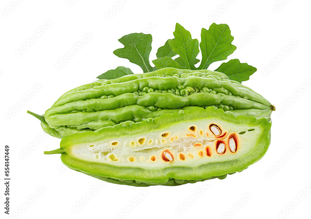 Bitter Melon with leaf isolated on transparent png