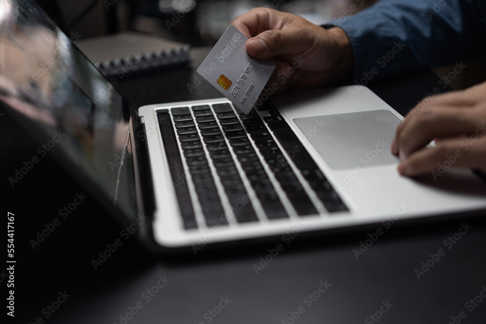 businessman using credit card and laptop to login to internet bank.Online shopping, e-commerce, internet banking, and financial transactions payments via e-bank application concept.