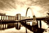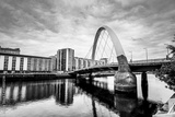 Black and white photo of suspension in bridge, Glasgow, Scotland