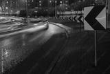 Evening car traffic in a big city. Cars in motion and standing in traffic jams. Long exposure exposure and headlight trails