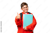 Little caucasian student kid over isolated chroma key background with thumbs up because something good has happened