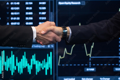 Close-up of male managers hands. Two cheerful men in formalwear shaking hands after good working together and reaching agreement. Business growth strategy and partnership concept