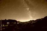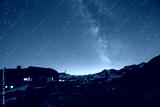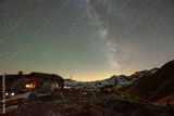 starry night sky in the alps with a mountain hut (Austria)