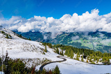 snowy hiking path in the alps in autumn during a sunny day (Vorarlberg, Austria)