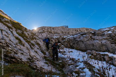 Hiking Through Alpine Majesty: Two Wanderers in the Sunlit Austrian Alps