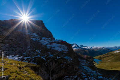 Lake surrounded by the swiss alps (Partnunsee, Switzerland)