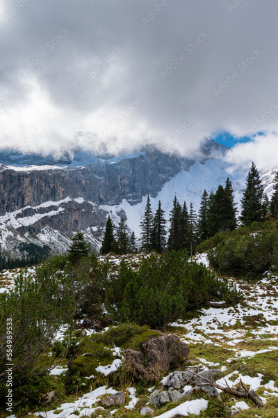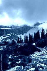 A cloudy day with snowy mountains (Vorarlberg, Austria)