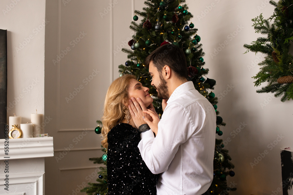 Romantic couple relaxing at home on Christmas time, christmas concept