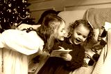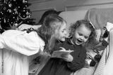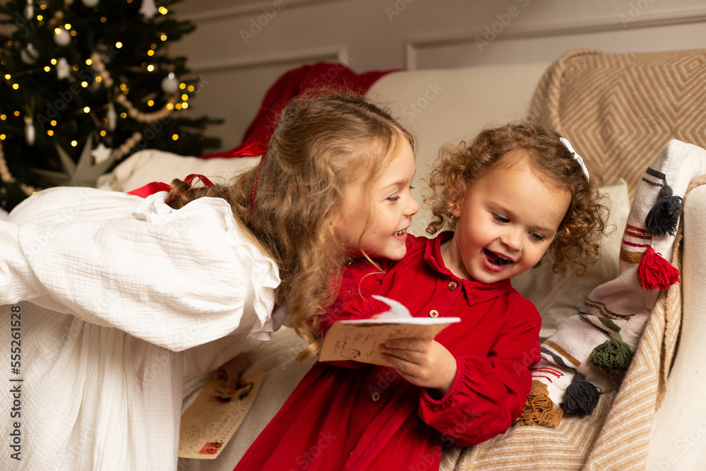 Cute child girls writing letter to Santa Claus on Christmas decorated home
