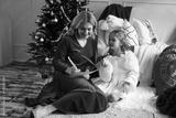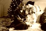 mother and daughter write the letter to Santa Claus near Christmas tree indoors. Merry Christmas and Happy Holidays.