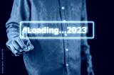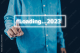 Hand using smartphone search on bar for loading 2023, start new year 2023 concept