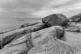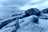 Ostseeküste mit Felsen und Schiff auf der Insel Blå Jungfrun in Schweden