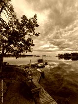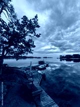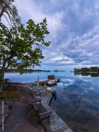 Ostseeküste mit Anlegestelle und Boote bei Oskarshamn in Schweden