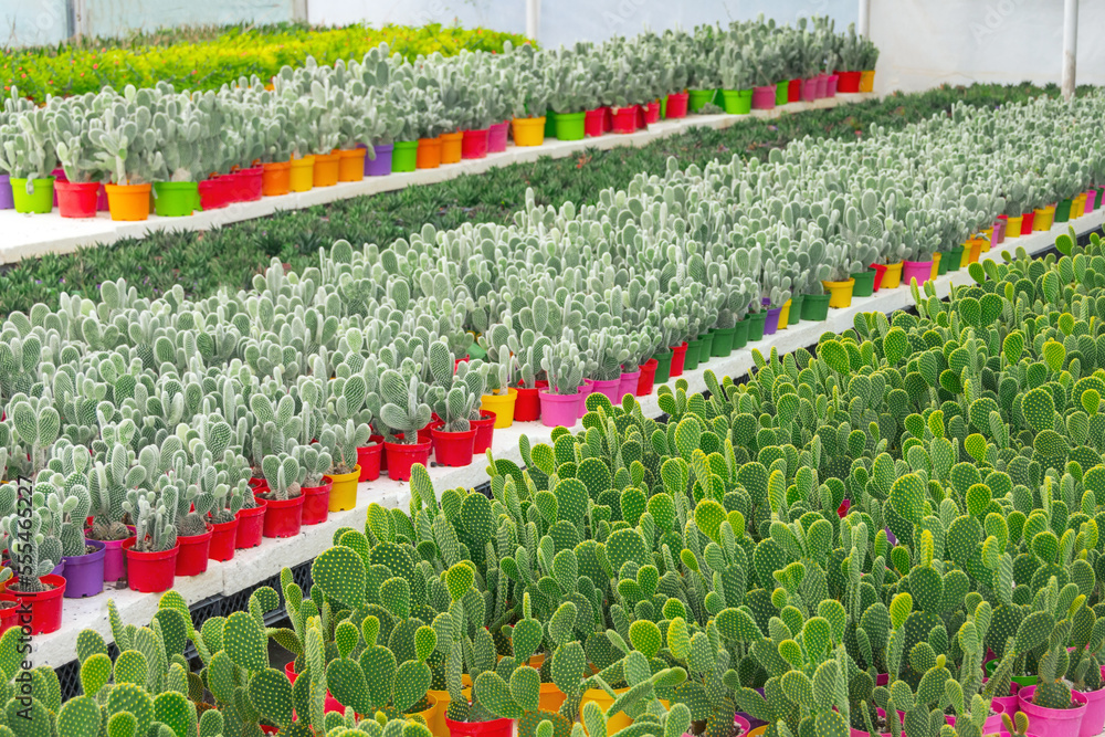Opuntia microdasys grown in large quantities on an industrial scale in greenhouses for sale.