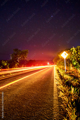 highway with lights acroos in dark night with sky full of stars in compostela nayarit