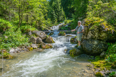 Fishing in the Grosswalsertal, Marultal, at Laguzbach, State of Vorarlberg, Austria