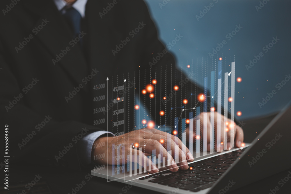 Businessman using tablet analyzing sales data and economic growth graph chart. Business strategy, financial and banking. Digital marketing.