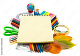 School and office supplies on white background. Back to school.