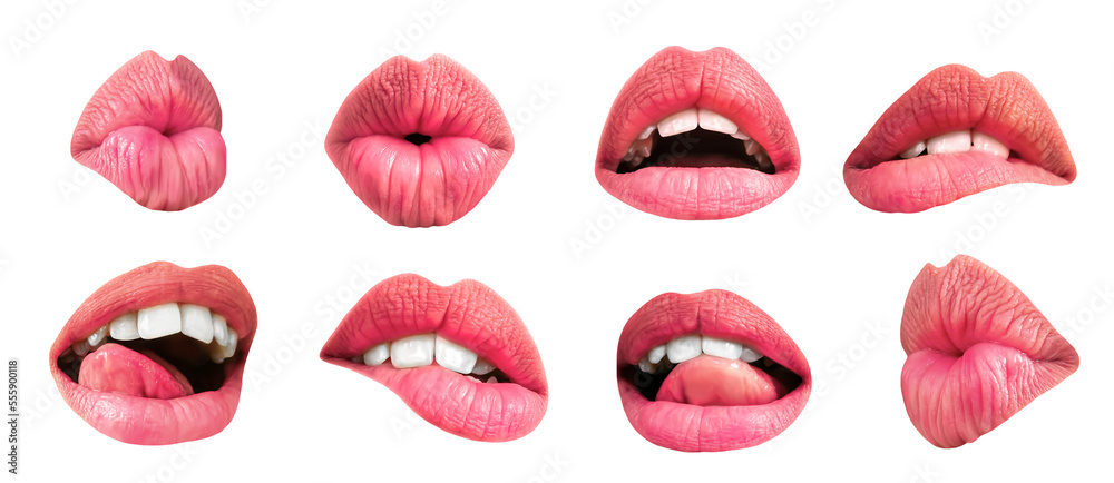 Beauty Sexy Lips. Valentines Day. Lips sending you hot gentle kiss isolated on a transparent background. Female lips lset for valentine day and love illustration.