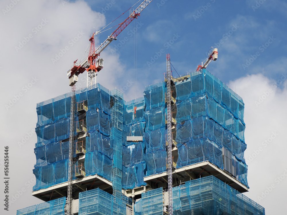 skyscraper Colon Towers under renovation in Plaza of Colon in Madrid