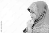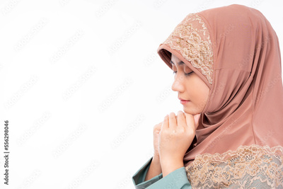 Muslim woman praying and praying wearing a mukenah Portrait islamic young woman Beautiful young muslim girl asian muslimah model posing on white background portrait of arab beauty lady
