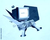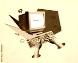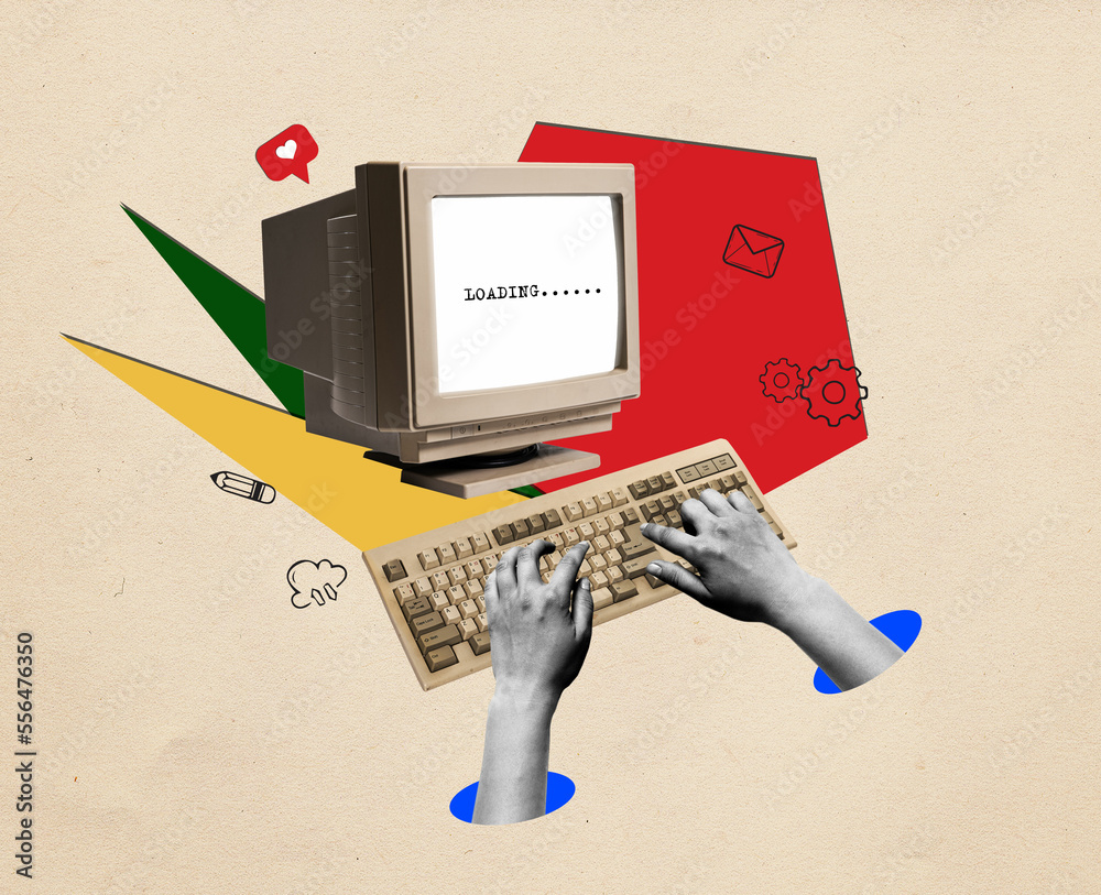Contemporary art collage. Hands typing on vintage computer keyboard. Concept of business, career, employers, teamwork, cooperation, success.
