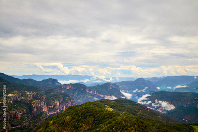 landscape in summer, mountains with cloudy sky, canyons and cliffs in mexiquillo durango