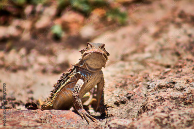 reptile with shape of dragon or dinosaur with blur background, phrynosoma orbiculare , mexican horned lizard in mexiquillo durango