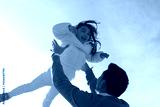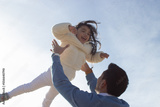 Loving Japanese father and daughter on sunny day. Japanese family walking, laughing, fooling around, lifting child up. Dad leisure, family time, parenting bright