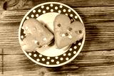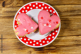 Heart shaped cookies on wooden table. Top view. Dessert for Valentine day