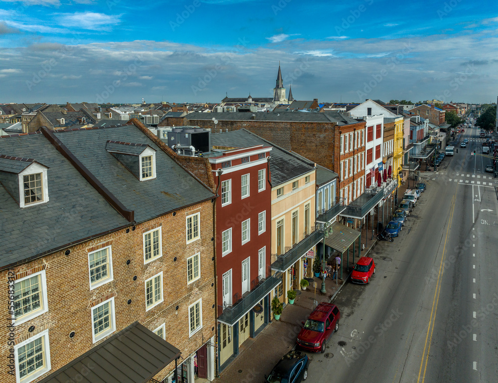 Aerial view of colorful colonial houses in the French Quarter in New Orleans
