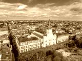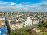 Aerial view of Jackson square, St. Louis cathedral, the Cabildo and the Presbytere in the heart of the French Quarter in New Orleans Louisiana