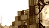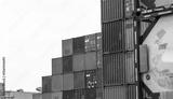 Container logistic. Cargo and shipping business. Container ship for import and export logistic. Container freight station. Logistic industry from port to port. Container at harbor for truck transport.